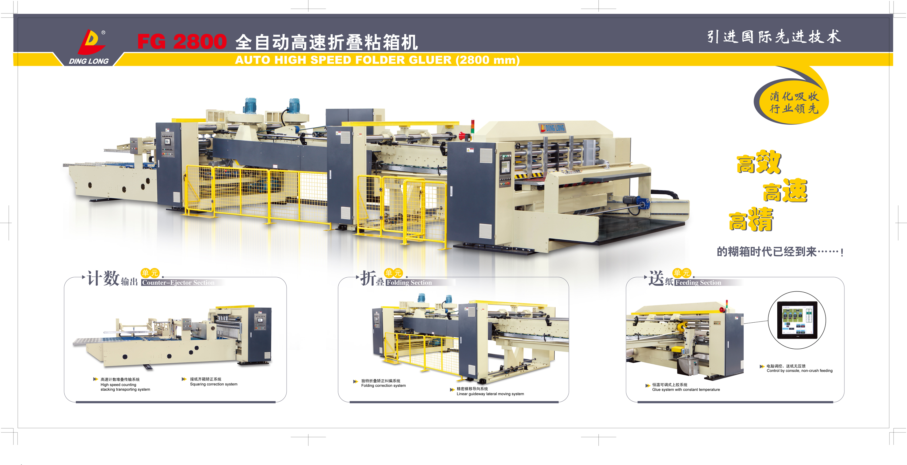 ◆ 獨特折疊矯正輪系統,航标杆輔助,折疊成型效果佳。 ◆ 後段吸附式皮帶傳輸,兩側獨立馬達驅動糾偏裝置,有效修正。